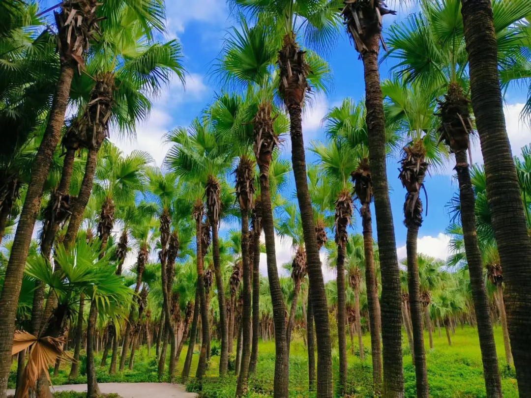 新会是蒲葵之乡,是我国现存规模最大的葵树林,也是唯一个葵林,拥有上百年历史的葵树林,错落密布。