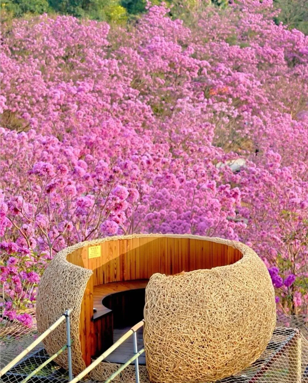 ▶12:30 抵达紫花风铃景区,午餐自行解决。饭后开始游览 34万平方米的紫花风铃,满树铃铛、姹紫干红的紫花风铃盛开,构成一幅美如童话的仙境,会让你深深的 到震撼!摄影家的天堂!