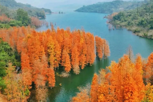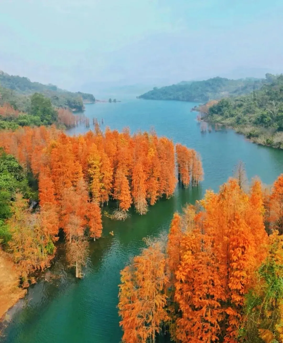 水库中有大片植物活化石-水杉