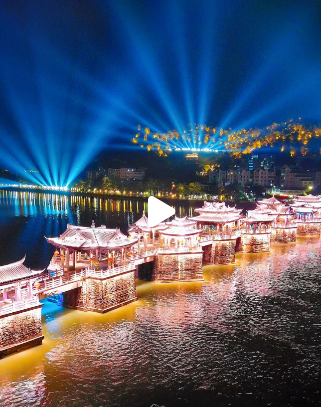 温馨提示:广济桥灯光秀表演时间每晚20:00和21:30各一场每场演示时间10分钟。(2023年1月1日起恢复正常演示)