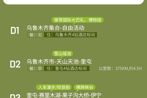 乌鲁木齐市-天山天池(75KM,约1.5H)-奎屯(300KM,约3H)