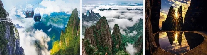 莽山新十景【五指峰]五景区坐拥大莽山核心精华景观、莽山五指峰高空栈道、天台山、金鞭峡谷、摩天岭、八卦台、心心心相印倒影池、流浪地球同款垂直电梯、观音古寺及万寿塔、莽山奇松、莽山云南日出、高空索道等数十个景点。景区先后荣获“全国首家无障碍山岳旅游景区”、“全国首家无障碍山岳型景区”,成为世界上第一个实现无障碍旅游的景区。乘五指峰索道+环保车上山、五指峰索道为全国单线最长索道缆车索性道全长3.7公里,全国单线早长;每小时客运量可达2000人,全国功率最大;全球索道极限高差,达1000米,创造了全国及至全球索道领域的多项第一,堪称“世界一流,中国第一”五指峰索道,上下穿梭,一索飞渡,腾云驾雾,仅需十几分钟,就到五指峰核心景区,莽山新十景一一亮相在你眼前。