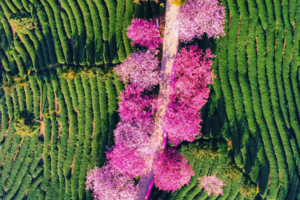 同时它还是世界最大樱花园,永福樱花,最大的特色是5万多亩的茶园,10多万株樱花沿着茶园道路而种,是日本冲绳名护城遗址的5倍!