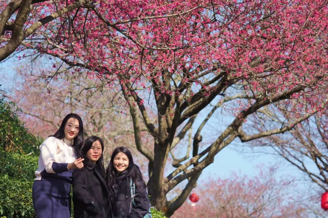 1月底-2月初,第一波盛开,主要是红色的绯寒缨、中国红、雾色樱、八重樱、牡丹樱;
