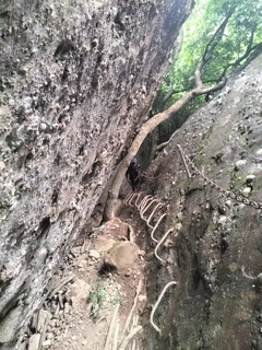 12:30  开始出发攀爬马鞍山,行走在巨石之下,沿铁索钢梯上升,登上马鞍山顶,鸟瞰东江景色。