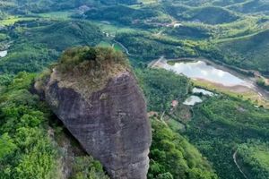 它由两座一大一小的石头构成,整座山体形似马鞍