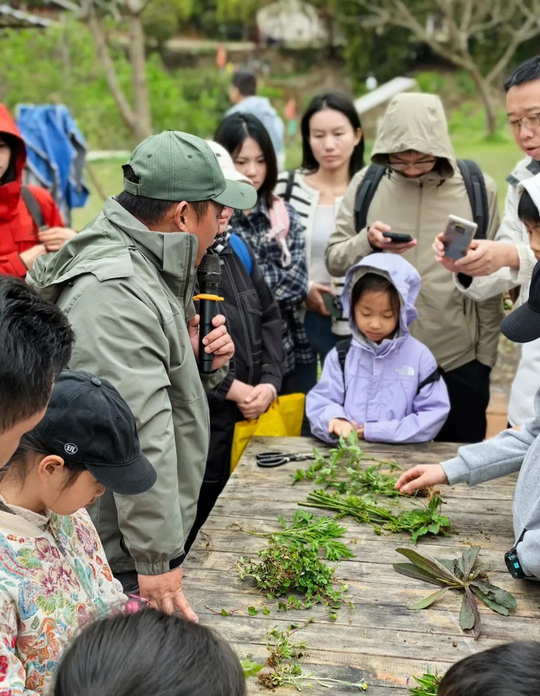 到达溪头村农场,领队讲解野菜知识和讲解注意事项,然后在工作人员带领下开始徒步,采集野菜