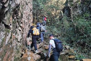 • 15:00 悬崖横切:沿山脊线向 “下天堂” 推进,此路段为核心风险区(70° 陡坡 + 碎石湿滑),必须 3 人以上结队,抓牢岩石或灌木借力;