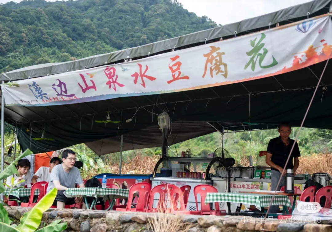 街边小店摆满山货与特色小吃,烟火气十足。村外溪流潺潺,竹影摇曳。