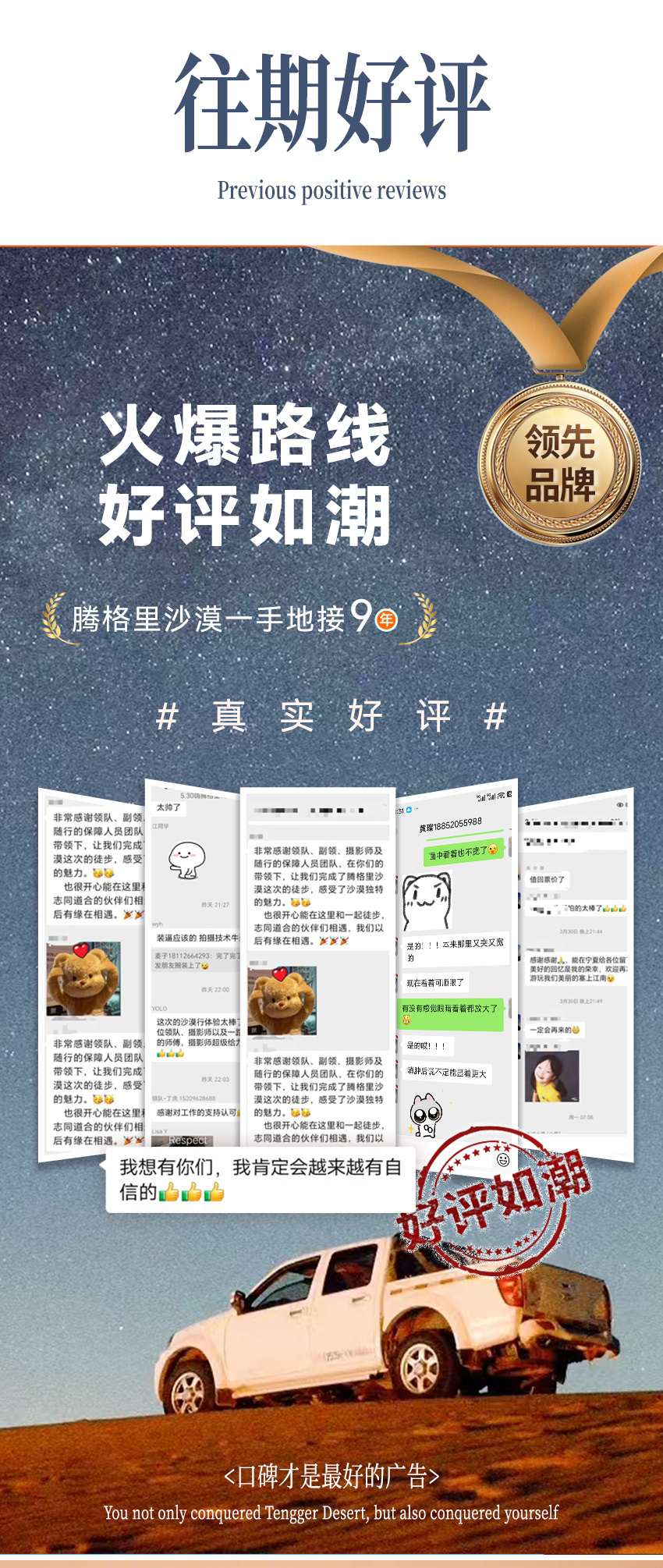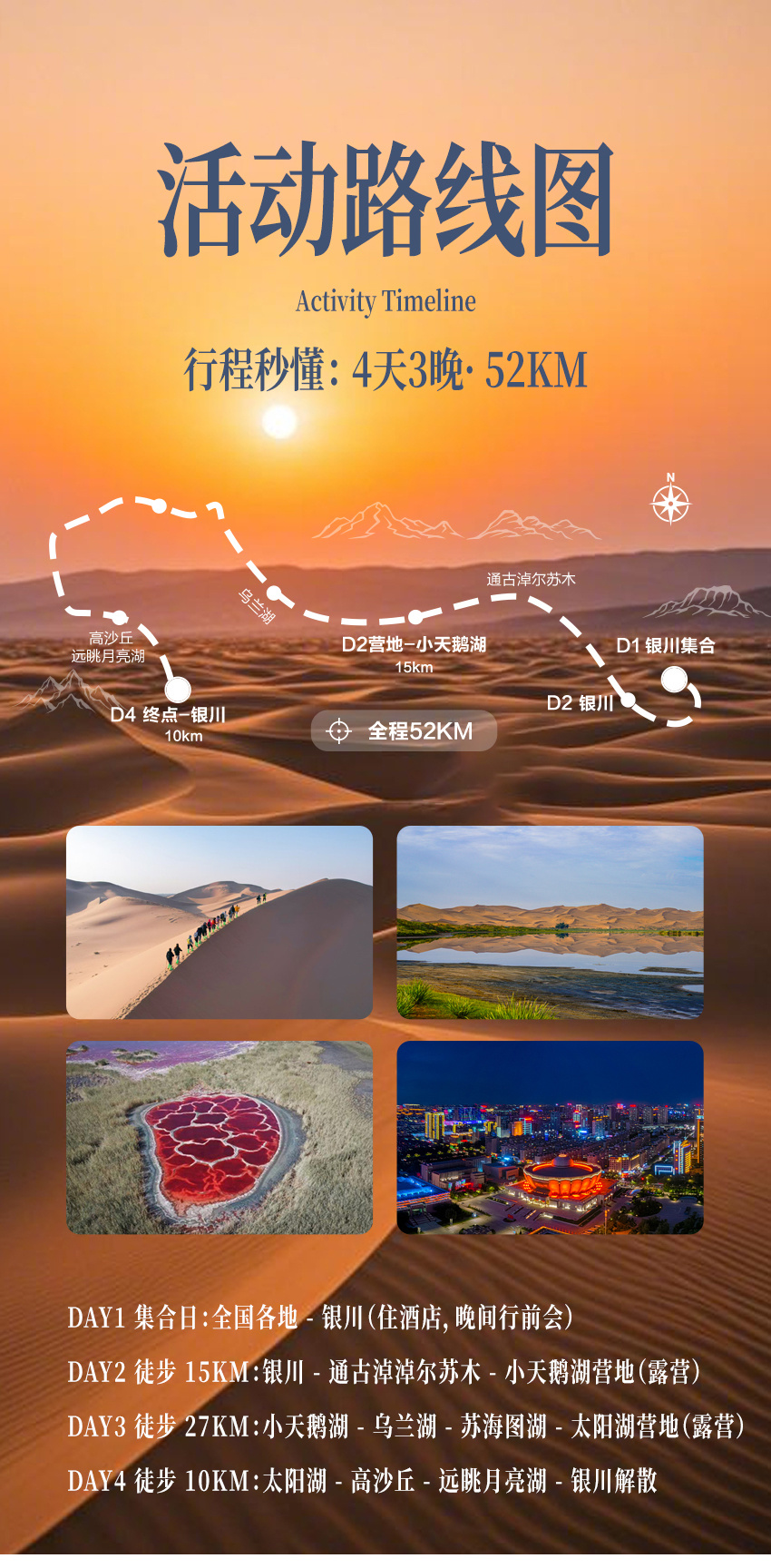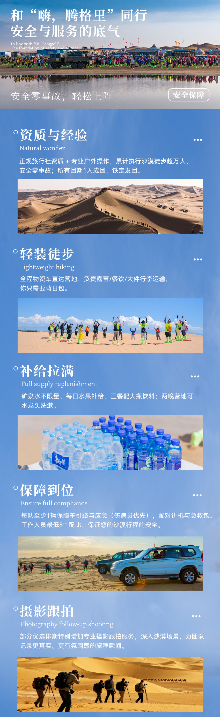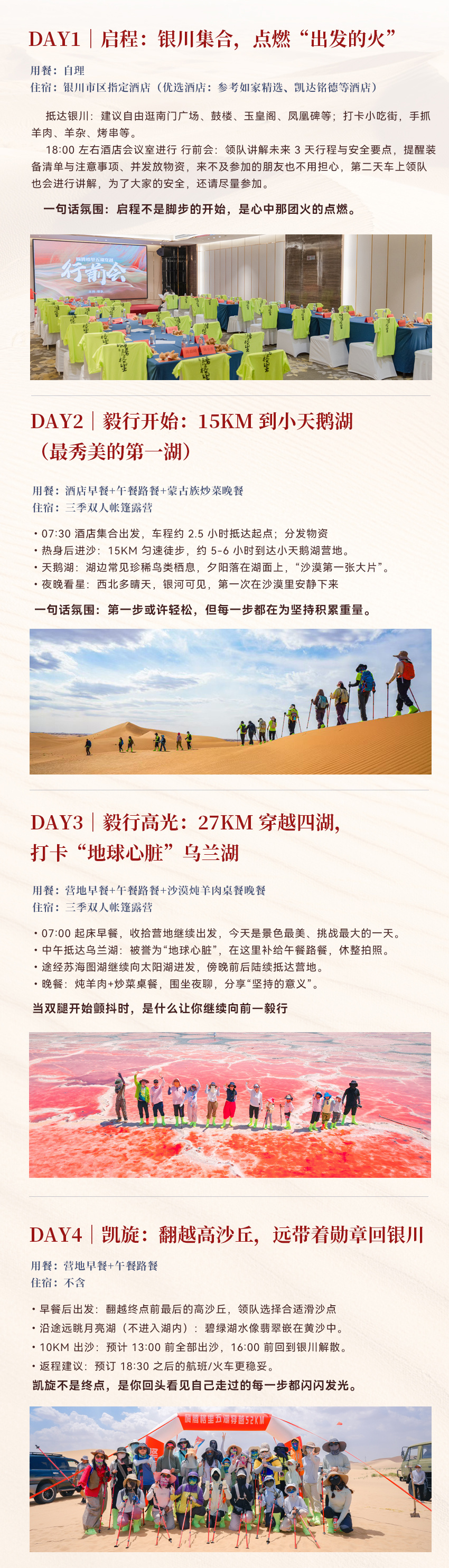 今晚请尽量保证充足休息,整理好个人装备,以最佳状态迎接明日的腾格里沙漠之旅。