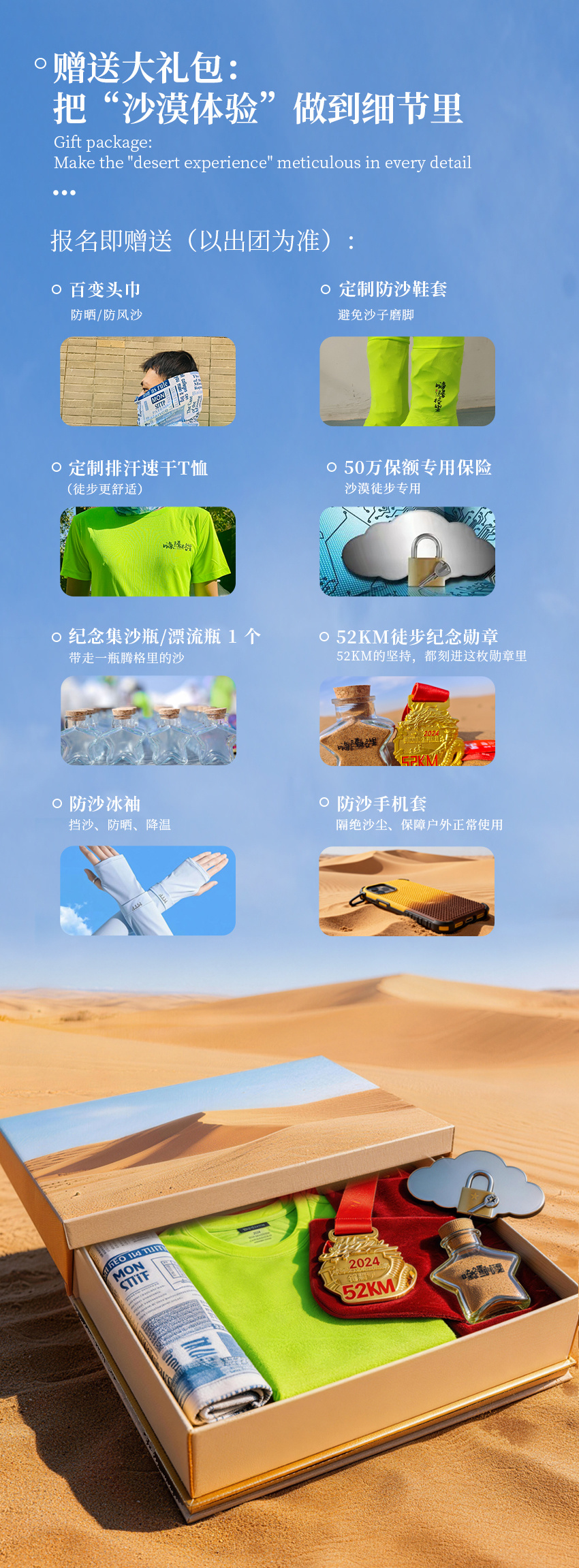 2、活动保险: 50万保额沙漠徒步专用定制保险。
