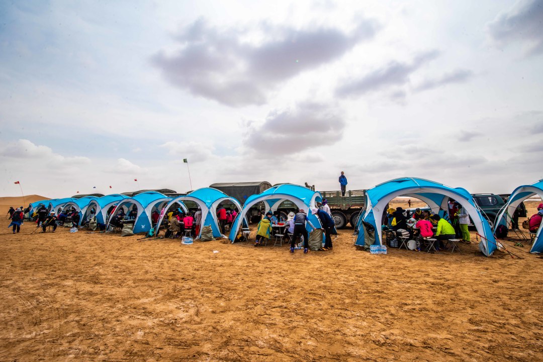 01 为队员们在银川提供了一晚的舒适住宿,尽管如此,队员们应该有充分的心理准备,两晚沙漠露营,组委会提供双人帐篷,抗风抗雨;专业级睡袋;专业防潮垫。但仍会与酒店舒适度有比较大的差距。