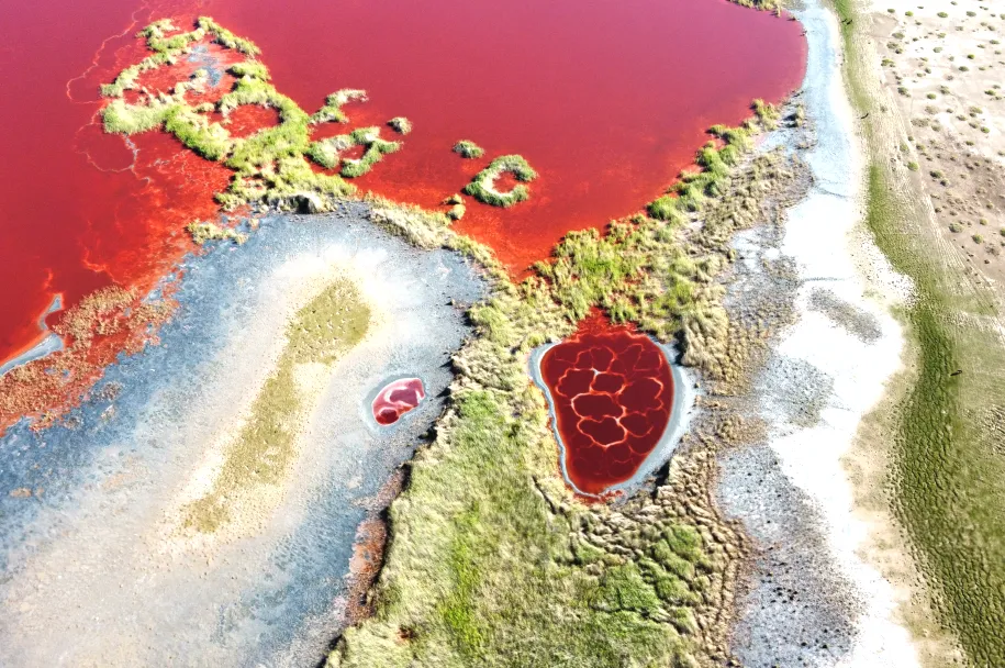 今日途径火爆网红打卡点【地球心脏-乌兰湖】,在腾格里沙漠深处的无人之境,有一颗鲜红的,正在跳动的“地球之心”,这里没有人烟,也没有信号,这是一片炙热的红色湖泊,在地球上沸腾,就像是地球跳动的脉搏。走在湖边,就像行走在一盘巨大的粉色调色板上,如果不亲眼所见,你绝对不会相信这些现切的雪花牛肉和灌满石榴汁的湖泊是真实存在的。